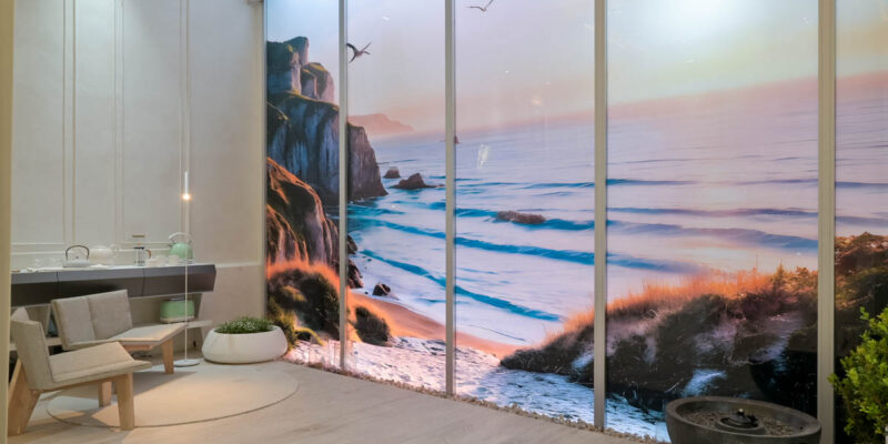 Un tema que atraviesa varios espacios de la muestra es la búsqueda de ambientes que transmitan calma, que inviten al relax y al disfrute.