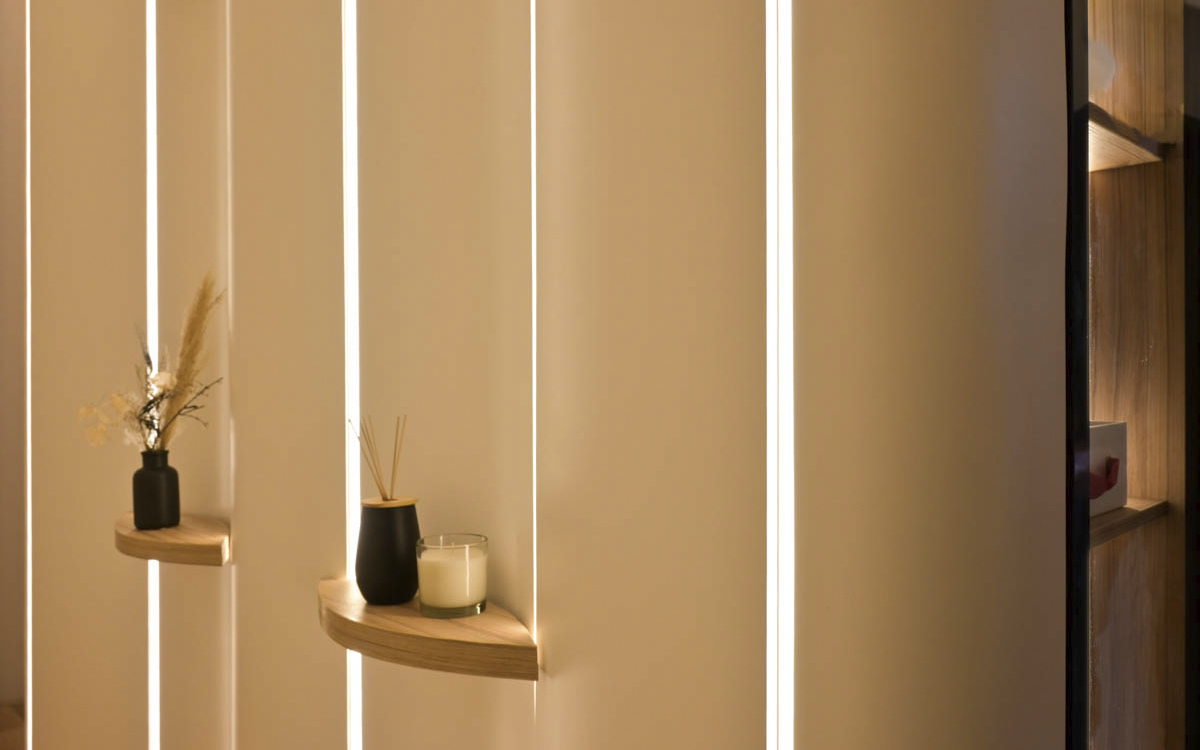 El Spa de Ricardo Braicovich nos sumerge en un ambiente claro y uniforme logrado gracias a la combinación perfecta del diseño de Piso Castaño Girona blanco de la línea NatureSense y el tablero Pino Cascina utilizado para las reposeras de descanso. Para los muebles de apoyo eligió el diseño Lino Blanco. El match perfecto entre piso y tablero que ofrece EGGER es un plus al momento de diseñar un espacio.