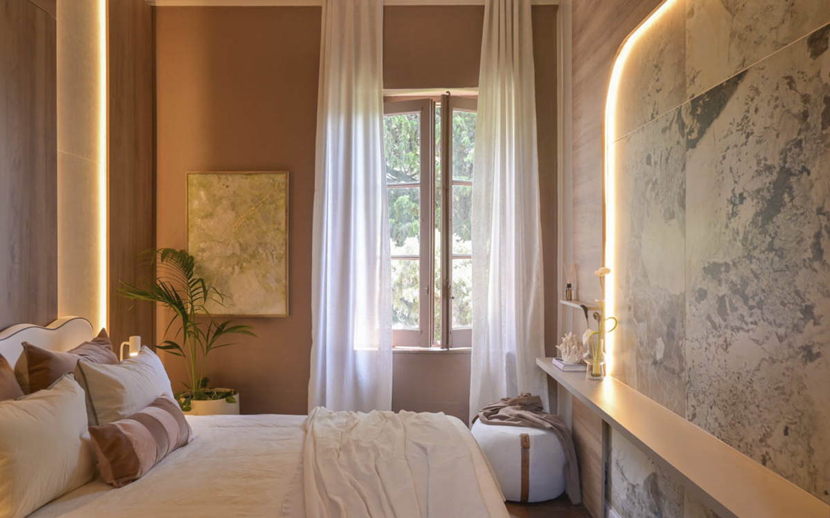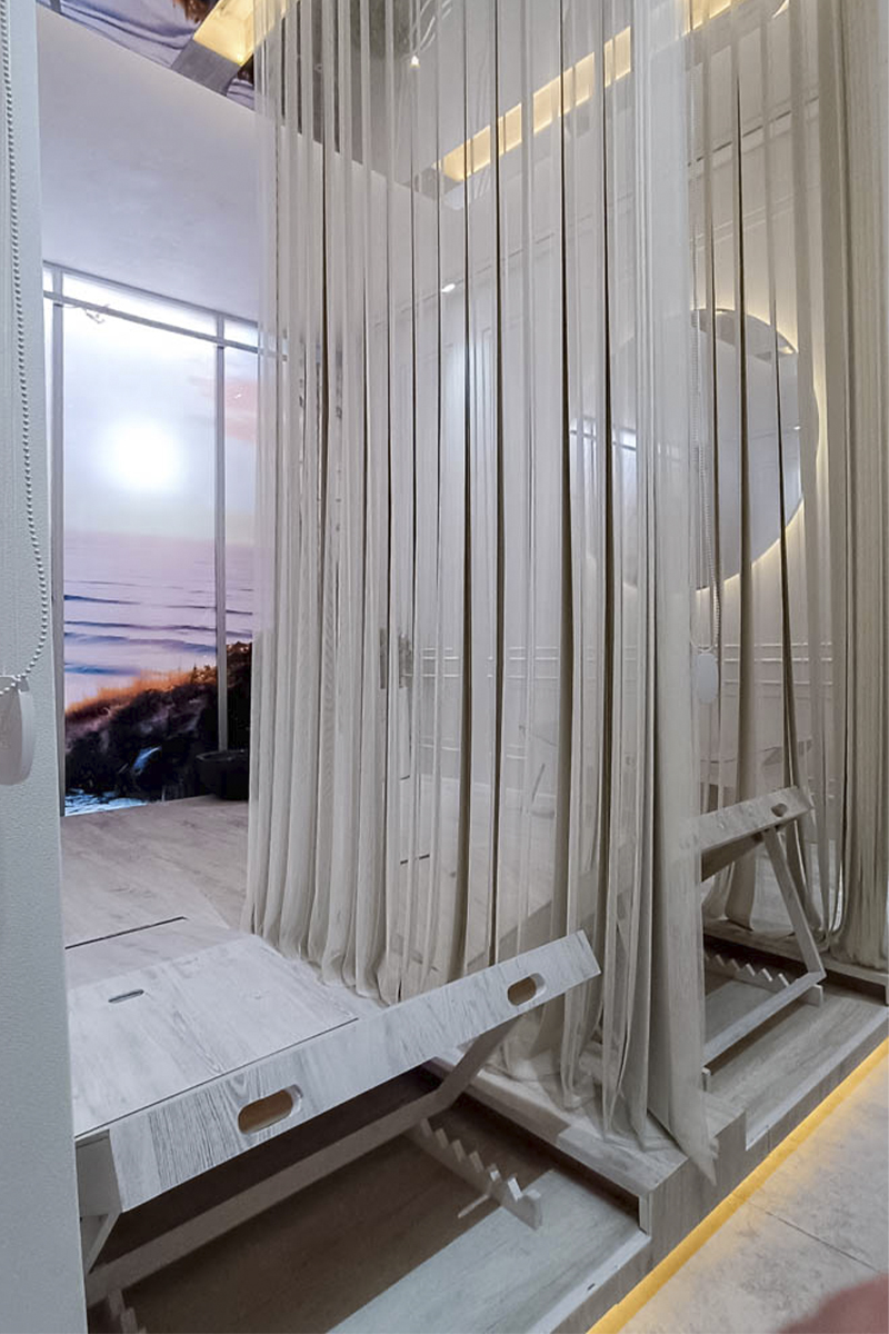 Un tema que atraviesa varios espacios de la muestra es la búsqueda de ambientes que transmitan calma, que inviten al relax y al disfrute.